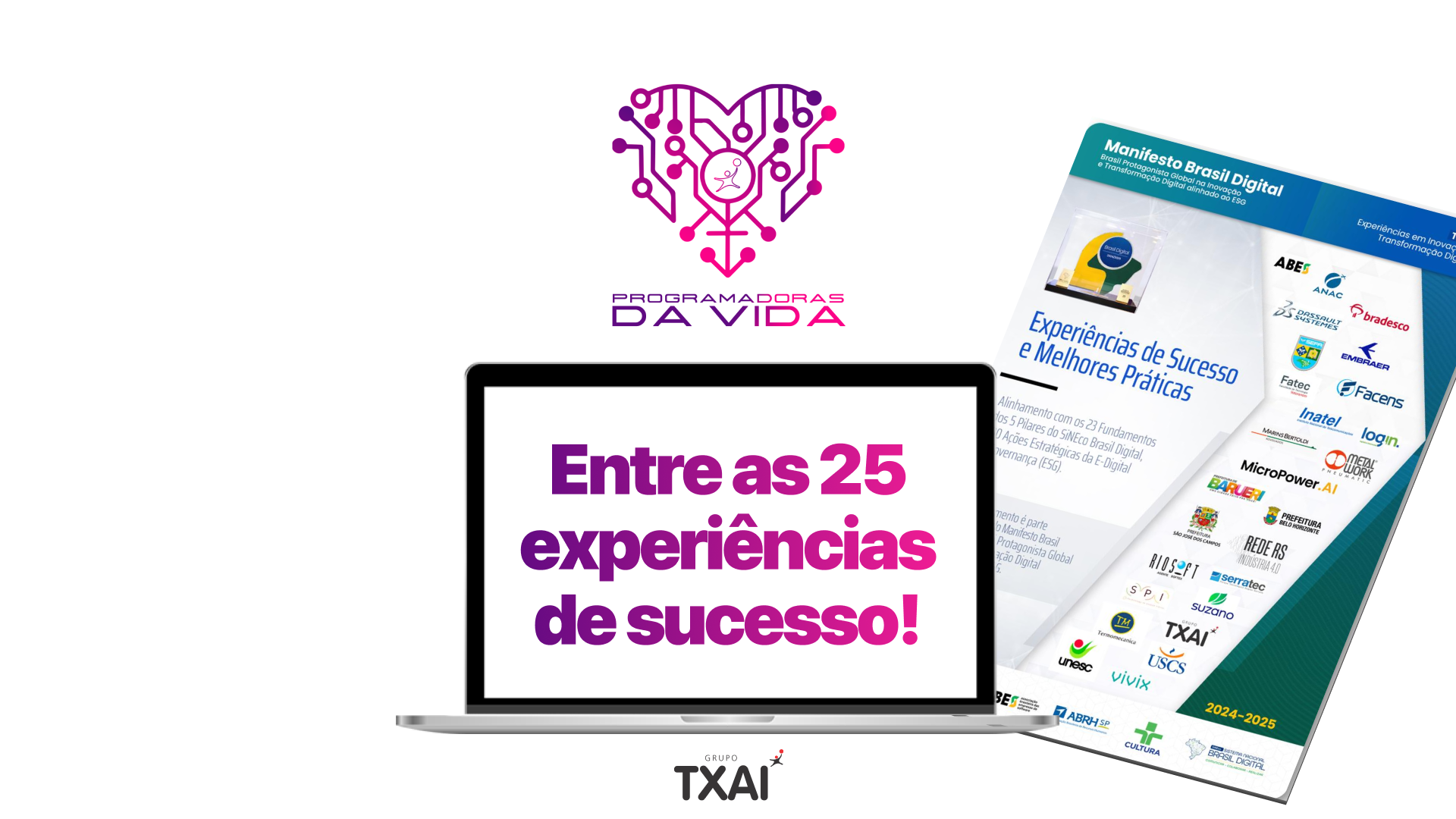 O projeto Programadoras da Vida, iniciativa do Grupo TXAI, foi reconhecido como uma das principais Experiências de Sucesso de 2024 / 2025 pelo movimento Brasil Digital para Todos, na categoria Ouro em Educação e Capacitação Digital Brasil Digital Para Todos.